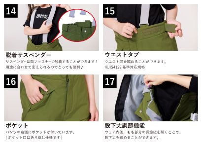 ・ウエストアジャスター:両脇のタブでウエスト周りを調整可能