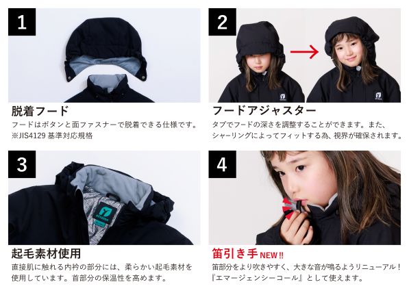 ・フード取り外し可能:フードが引っ掛かったときには取れるので安全性もUP!