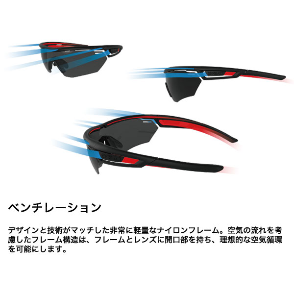様々なアスリートからのフィードバックで開発された最先端技術を駆使したレーシングモデル。製品タイプ:スピードスポーツモデルテクニカル:ソフトテンプルエンド フレキシブルノーズパッド調整可能 フレキシブル曇り止め加工レンズ:911、912、913:PM3 PURPULE MIRROR/P1 PINKC53:RM3 RED MIRROR/P1 PINKレンズカーブ:7重量:32g