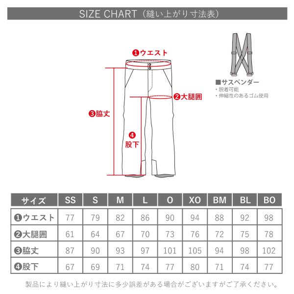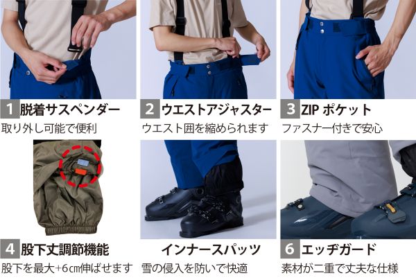 ・股下丈調整機能:股下を最大6cm伸ばすことが可能(足口内側のステッチをほどく)